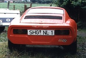 Und so sah das Teil von hinten aus. Die Ersatzteile des Fahrwerks und Chassisbleche kamen von NSU, die Heckscheibe vom Fiat 850 und die Frontscheibe vom Porsche 908 (gebaut 25Stk.). Da auch der Thurner RS (gebaut ca.125 Stk.), die selbe Scheibe hatte, war der Bedarf bei den Porsche ähnlichen Fahrzeugen höher als beim Vorbild, dem Porsche 908.