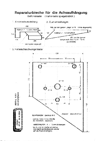 Gefragte Unterlagen zur Verwendung ohne Gewähr und Haftung Reparaturbleche für die Achsaufnahmen