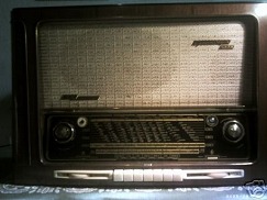 Und dann war da noch das Radio meiner Eltern. Es war ein Grundig 4035, der 1955 anlässlich einer Steuerrückzahlung angeschafft wurde. Er blieb dann im elterlichen Wohnzimmer bis 1966 ein Opus Studio gekauft wurde, einer der letzten Voll-Röhren- Radios. So kam es, das der alte nun in meinem Besitz befindliche Grundig enthaust wurde und in eine Kommode, meinem Musikstudio eingebaut wurde. Oft erinnere ich mich noch an den Einbau: Man wollte ja auch beim Bauen Musik hören, was dann im Laufe der Zeit auch im wahrsten Sinne zu Berührungsängsten führte. Der Ersatztyp auf dem Bild ist allerdings ein 4035 3D, zwei Lautsprecher mehr und von Außen das zweite Schild auf der Schallwand. Doch wer weiß das schon.